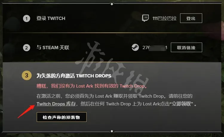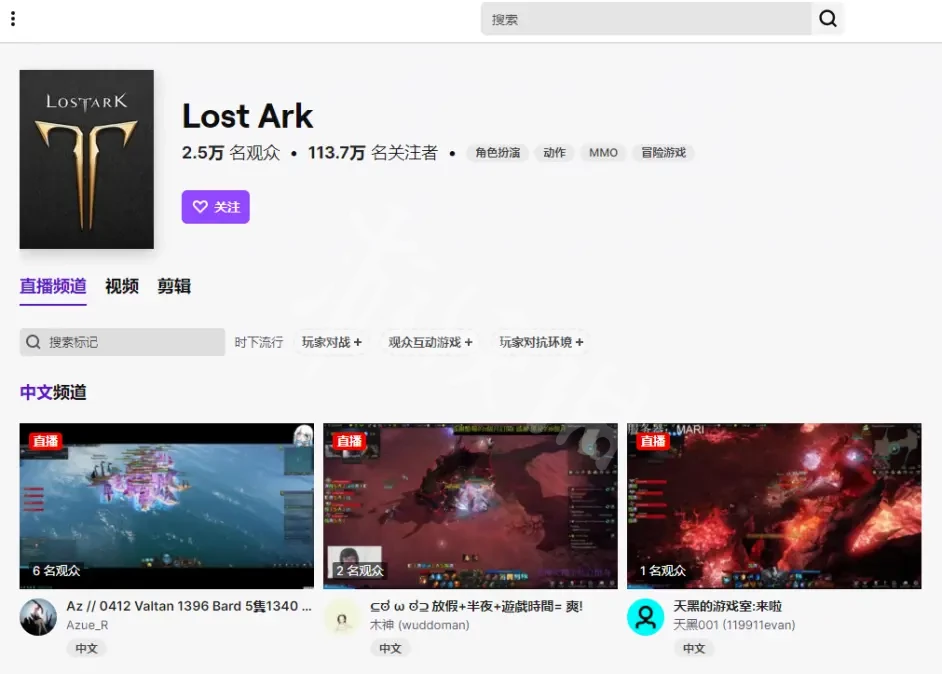 5、打開twitch後,搜lostark即可看到相關的直播頁面,活動開啟後,選擇啟用掉寶,進入相關的直播間觀看2個小時候即可獲得獎勵。