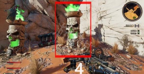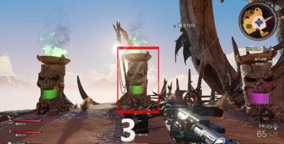 接下來你需要面對一處解謎場景,這里有5座骷髏石像,你需要按照一定順序射擊它們,從而完成解謎,打開前方的魔法門。