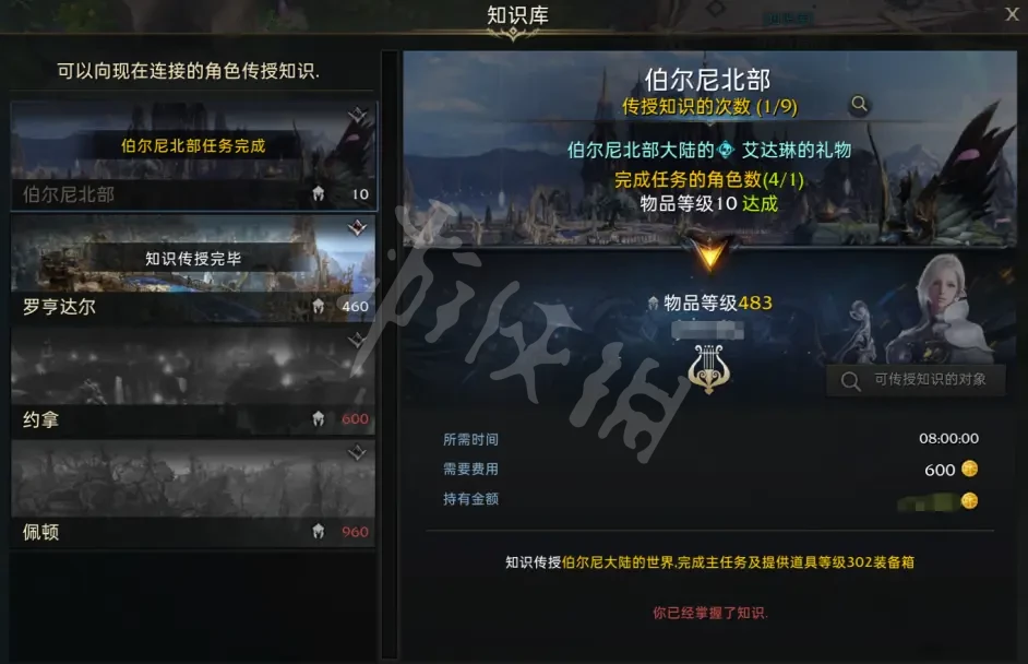 而一個大陸的主線需要跑1-2小時才能完成,可以說相當頭疼,為了限制游戲平衡,這個設定本身也還算合理,於是為了減少玩家的重復精力投入,游戲中的家園開放了知識傳授,即直升系統。