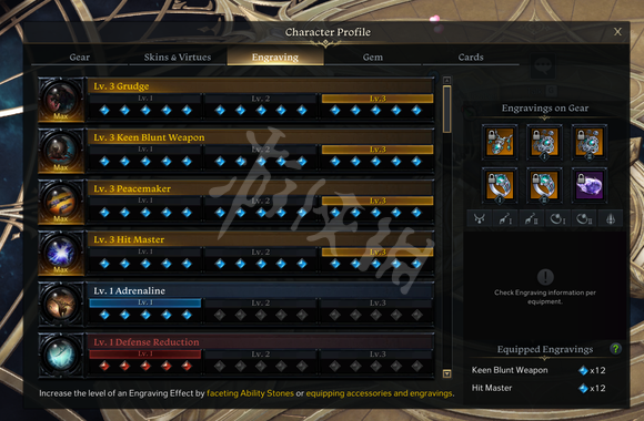 4*3+1的話推薦 怨恨/精氣吸收3,鈍器3,側擊3,三槍職業3,腎上腺素1。注意現在達成這個銘刻只有一種可能,就是兩個12點戰鬥銘刻書,和身上5件3級三槍+3級戰鬥銘刻的首飾,和一個至少6+5的能力石。