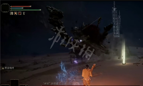 最終BOSS, 一階段人形攻擊範圍大,會瞬移還會陽光槍。二階段是艾爾登之獸,血很厚,不能鎖定,技能傷害賊高。