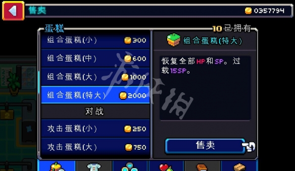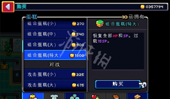 接下來我們去道具商店,和商店老闆以1800金幣的價格,買99個組合蛋糕(特大),老闆驚呼:大客戶!
