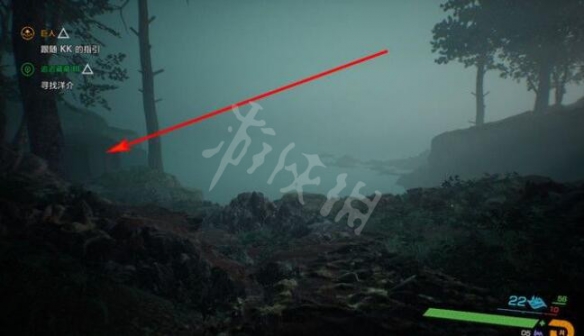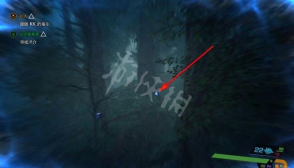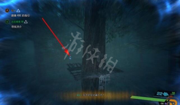 步驟3:往右邊看,洋介就在大樹旁邊,開透視視野就能看到他(本任務透視視野升滿級就很容易過)。