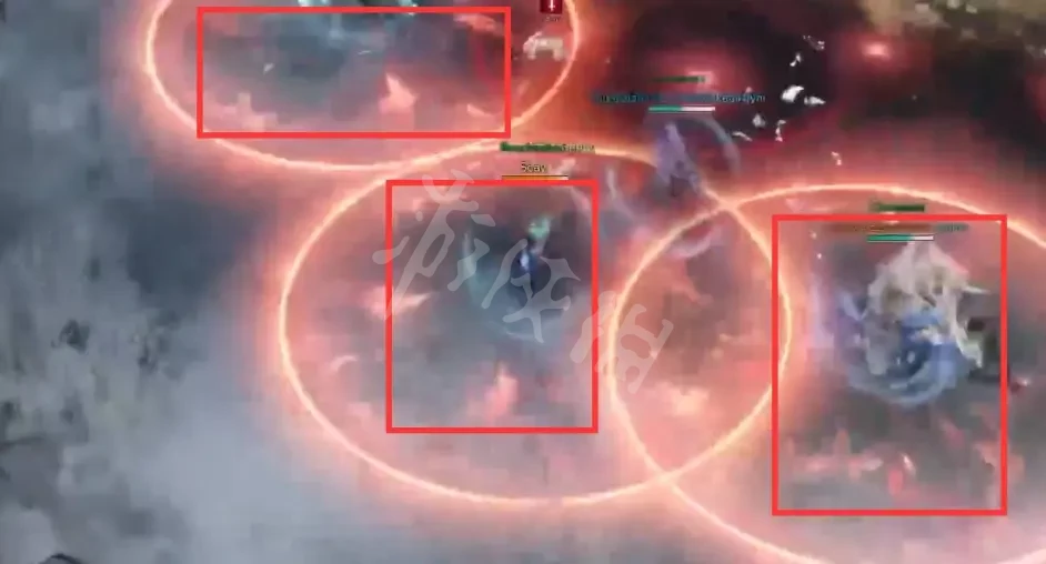 1、一號BOSS,玩家注意地面上顯示的BOSS技能範圍標識(紅圈),注意躲避。當隊伍中有角色頭頂出現瞄準標識時,攜帶該標識的角色應離開團隊聚集處,往地圖邊緣去躲避技能。