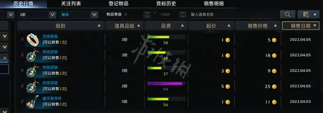但很多小夥伴在打開交易所,登記裝備後,發現“歷史成交”“搜索拍賣場”都是空白的,提示沒有物品,以為這件首飾就沒有價值,索性全分解了,那你可能真的虧大了。