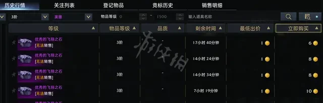 大致了解歷史成交區間後,再次點擊“搜索拍賣場”,查看目前交易所的存量,如果量多且價值低,可以掛低價出售,如果量少,參考歷史價浮動出售。