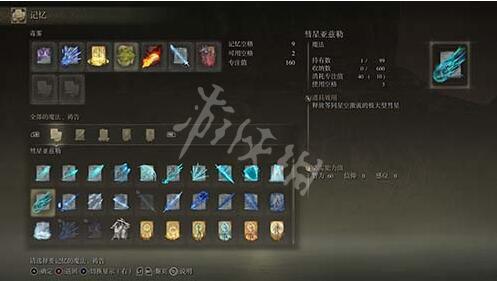 艾爾登法環中的魔法彗星亞茲勒是游戲裡非常強大的超強法術,這個魔法的智力要求是60,而且還會佔3個技能槽,藍耗巨大。