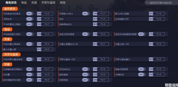3.開啟修改器各主初始項再使用各子修改項[無主初始項則不用開啟][主初始項:如開啟...修改]。