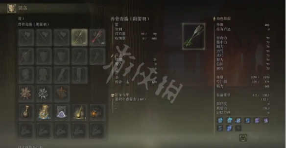 現在開始檢查裝備,長弓一把,或者打過戰灰拉滿弓的遠程武器一把,長弓可以在大賜福的雙生老嫗處購買。