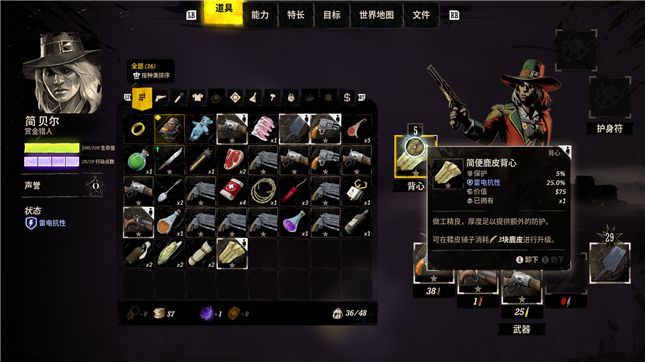 詭野西部另一個讓我覺得很獨特的地方就是它的戰鬥,因為它明明是一款俯視角射擊/動作遊戲,卻總是提醒我它擁有一些 CRPG 的內核。