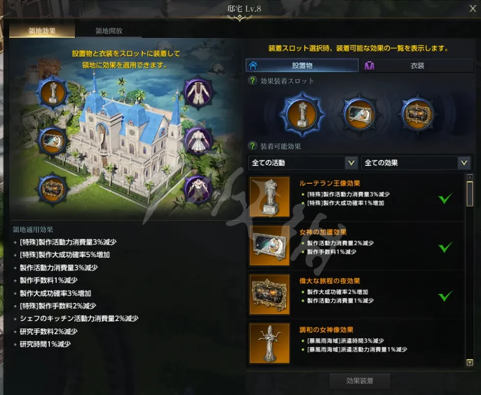 在主宅門口,和這本書對話,可以把我們跑大陸百科和收集獲得的擺設物裝備在領地上(光擺上去沒用,得裝備!)
