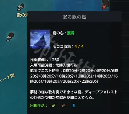 如果你時間較多想穩定獲得材料不想浪費體力的話,我推薦去睡歌島。