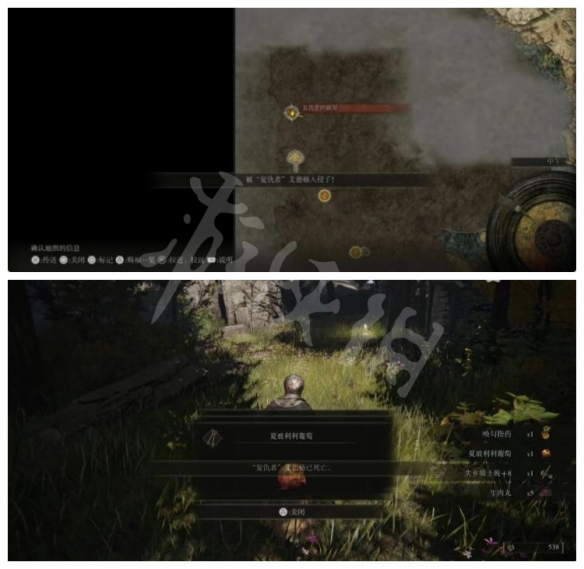 7、我們接著前往湖之利耶尼亞東北方向鎮靜教堂,在附近會被維克入侵,我們擊殺他即可獲得指痕葡萄。