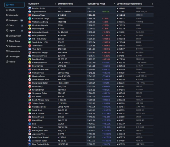 從下圖我們可以發現,售價最便宜的依舊是阿根廷服,而售價最高的竟然是紐西蘭服。想要低價入手的小夥伴可以前往阿根廷服進行購買。