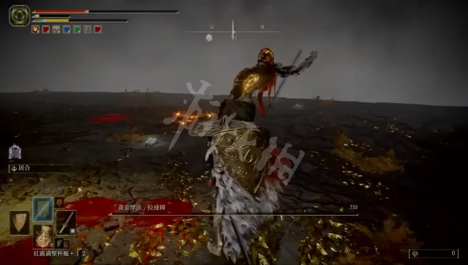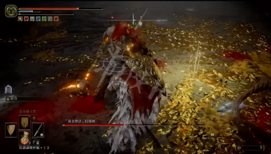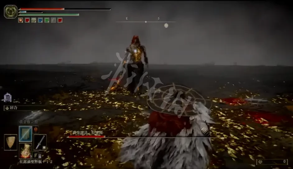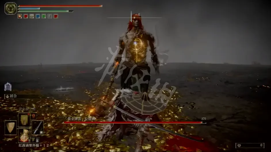 拉達岡對近戰比較麻煩,AI連招比較強,反而艾爾登之獸是只懂拉打的傻瓜,有足夠量的紅水就能解決,下面精準拆招黃金律法拉達岡。