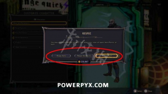 在換衣站按【□/×鍵】洗點(PC版直接看此面下方按鍵提示選擇重置技能即可)。