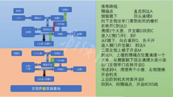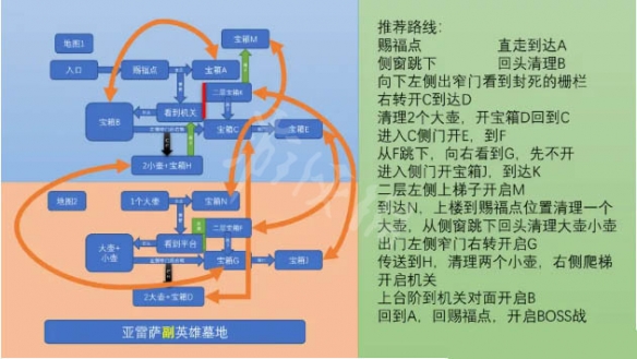 副英雄墓地共有2副地圖,有賜福的為地圖1,沒出口的為地圖2。