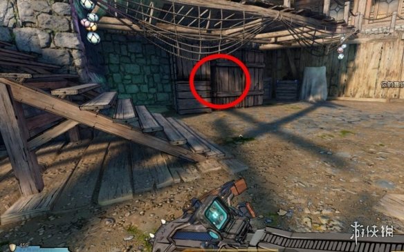 幸運骰子8:碼頭邊的木箱後面。