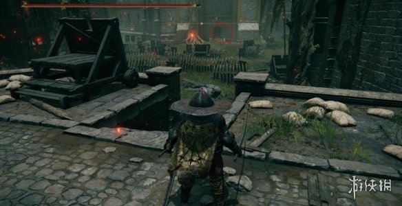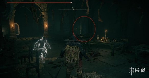 第二張圖進入紅圈位置拱門,之後再直行前進,來到第二個房間,房內有接肢貴族,右轉看到兩扇拱門,進入紅圈標註拱門,之後用石劍鑰匙解開封印,拿到道具。