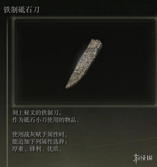以上就是關於艾爾登法環鐵制砥石刀作用及拿法的相關分享,不知道在哪能找到的玩家看後可以到游戲里的相應位置探索一下,希望對大家游戲有幫助。