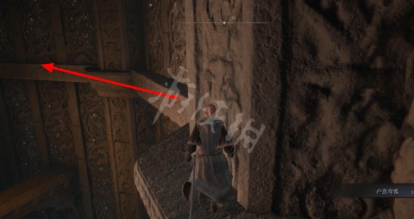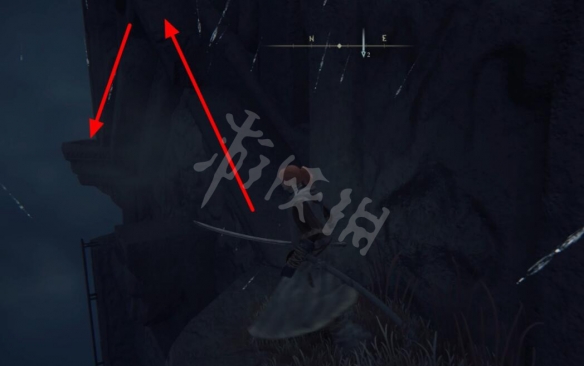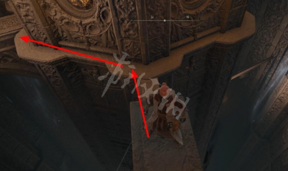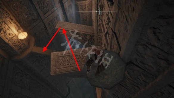 來到蓋利德神授塔底部後,通過旁邊的樹干到達神授塔邊緣,隨後沿下圖所示線路向上。