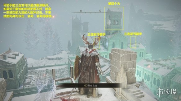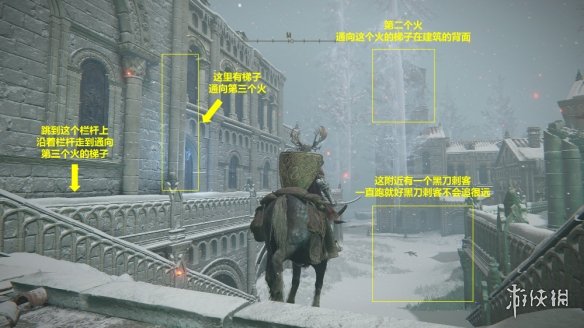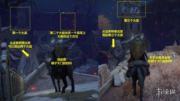 11. 完成儀典鎮的解謎,前往聖樹。這裡的解謎和魔法鎮瑟利亞類似,但最好是帶好一面大盾,不然會被兩個弓箭手射成刺蝟。如果害怕隱身的黑刀刺客,在王城遁世商人處購買哨兵火把可以讓刺客顯形。但是就我自己三次解謎的體驗來說,只要一直跑就不會被黑刀刺客逮住。