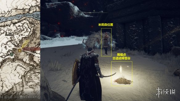 10. 下面米莉森會出現在賜福點“古遺跡降雪谷”旁邊,和她對話至復讀。