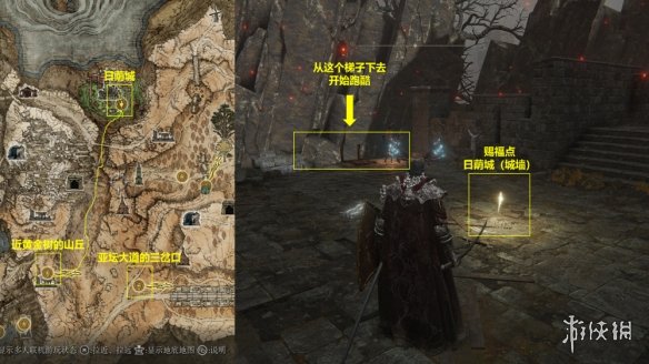 8. 前往日蔭城。在如圖所示的西側城牆的一處房間中,我們可以找到關鍵道具“女武神的義手”。將它交給米莉森,再次對話後米莉森會消失。