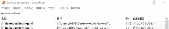 首先c盤搜索gameusersettings,按照時間排序找到小緹娜的這個文件的位置,你們也可以參考我的位置。