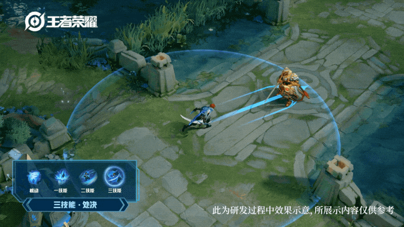 1技能被動:在河道區域沒有持續時間的限制;如果1500範圍內有「英雄獵物出現」,加速效果會額外提升