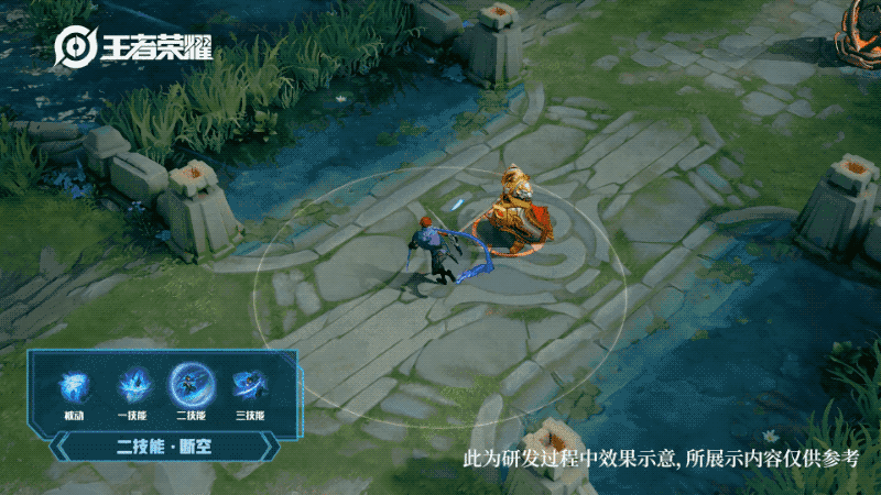 下潛狀態下釋放斷空會附帶一個指定方向的位移,並返還1技能一半的冷卻時間。
