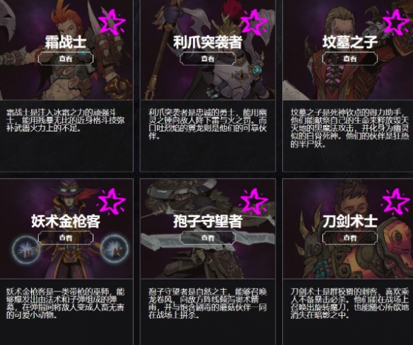 在職業選擇上,我們的選項有刀劍術士、妖術金槍客、霜戰士、墳墓之子、孢子遊俠和馭龍勇士6種,光聽名字就能夠讓人感受到這些職業更像是融合了D&D跑團和無主之地的產物,每個職業都有1個被動、2個可以切換的主動和一條技能樹。