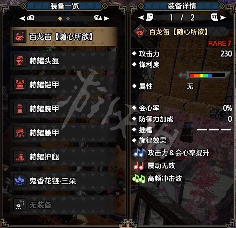 怪物獵人崛起百龍笛如何配裝?許多小夥伴不知道百龍笛如何搭配裝備,那些裝備適合使用笛子武器。下面小編就帶來怪物獵人崛起百龍笛配裝思路分享,一起來看看吧。