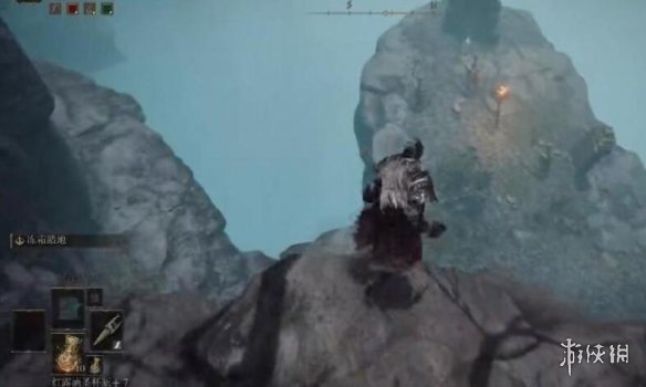 一路跑到懸崖邊,看好位置,有幾個“會溫暖地抱抱”的怪物正在對著一塊碑進行膜拜,從那裡跳下去撿白光即可。