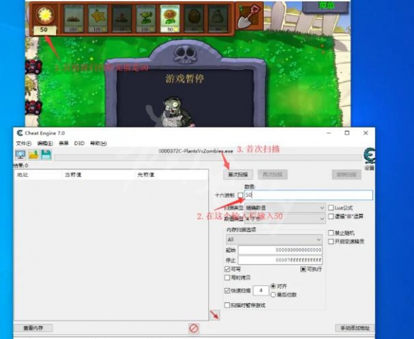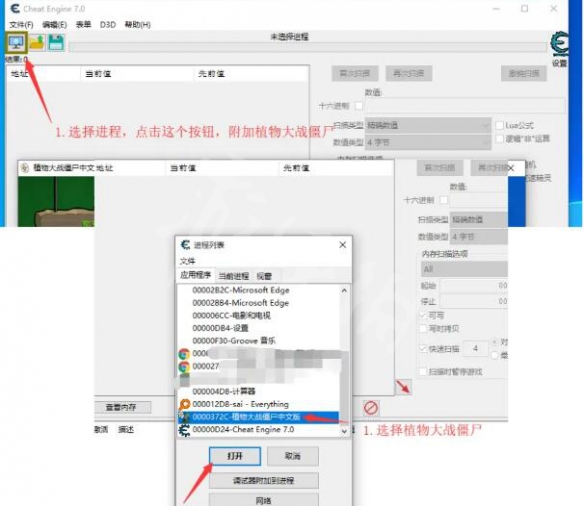 廢話不多說,直接開始:首先啊,打開我們的植物大戰殭屍和CE修改器。