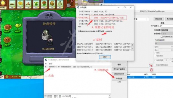 6.陽光和金幣都是這樣改,現在教學靜態地址和偏移