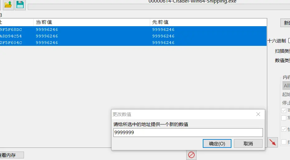 然後選中這三個數值,右擊。第二個選項“改變已選中地址的數值”,輸入你要改的數值大小,然後確定。