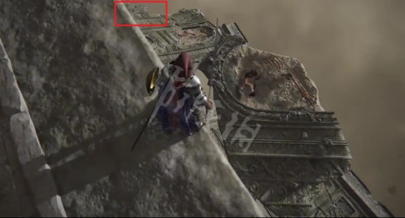 傳送至逐漸崩毀的法姆亞茲拉,跳至平台紅框位置後便可發現珍珠龍徽護符,同樣的這邊的怪也不會掉落道具。