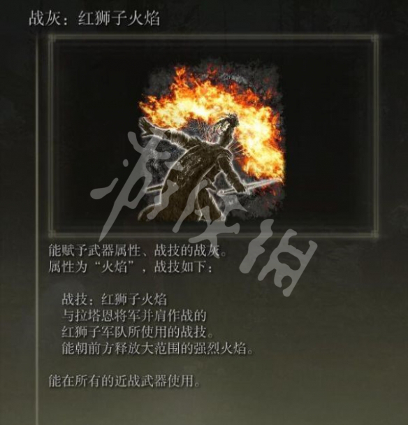 紅獅子火焰是一個戰灰,削韌非常強大,打一些大型怪基本上兩個戰技一個處決。