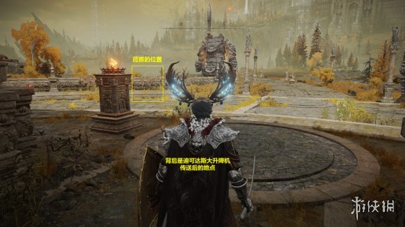 4. 繼續推進進度到開啟迪可達斯大升降機來到亞壇高原,我們可以大升降機欄桿附近找到菈雅。和她對話,我們就會被傳送至火山官邸。如果提前開啟了大升降機,就只能跑路前去火山官邸。