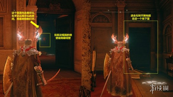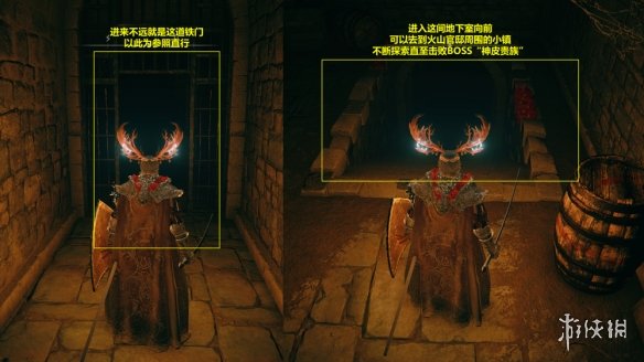 9. 和塔妮絲對話結束後,前往走廊右手邊第一間房間,房間牆壁右側是隱藏牆壁。通過牆壁後的通道可以探索火山官邸周圍的小鎮。