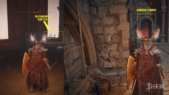 11. 根據下圖所示的路線從賜福點“艾格蕾教堂”出發,在一處小屋內找到澤菈雅絲,和其對話,她會請求我們殺掉她。此時產生第一次劇情分支,殺掉她任務提前結束,獲得護符“狄蒂卡之禍”。