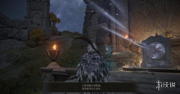 葯水交給義父後咱們去四鍾樓塔,在旁邊拿到魔石劍鑰匙後點亮從上往下路旁第一個傳送門。