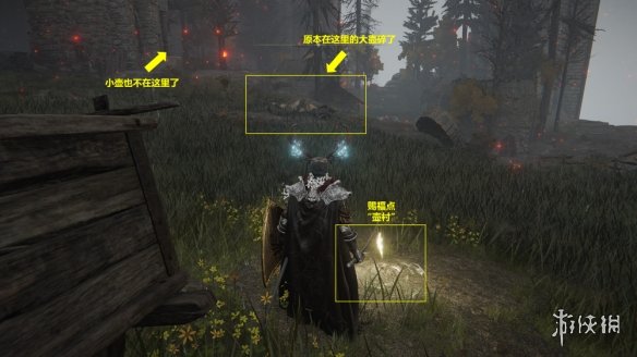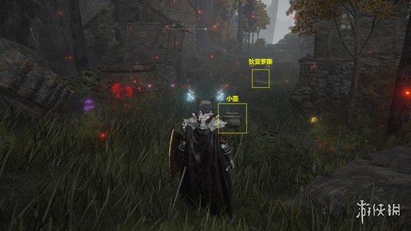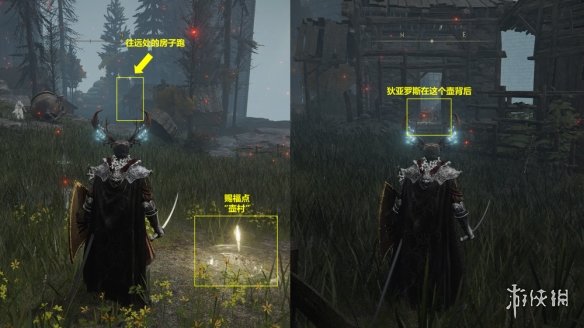 8. 反復刷新地圖,直至賜福不遠處的壺碎掉,此時向之前狄亞羅斯所在的屋子前進。在村子的大路上發現小壺和不遠處死去的狄亞羅斯,和他們一一對話。