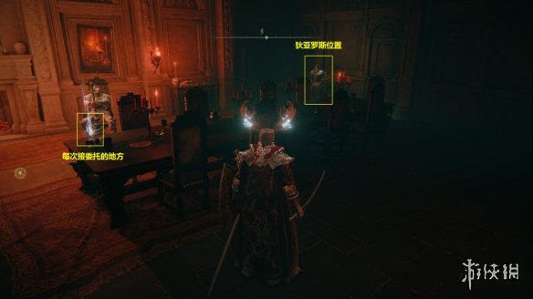 1. 當我們到達圓桌廳堂後,可以看到狄亞羅斯站在大賜福邊。和他對話,得知他在尋找他的隨從勒妮亞。