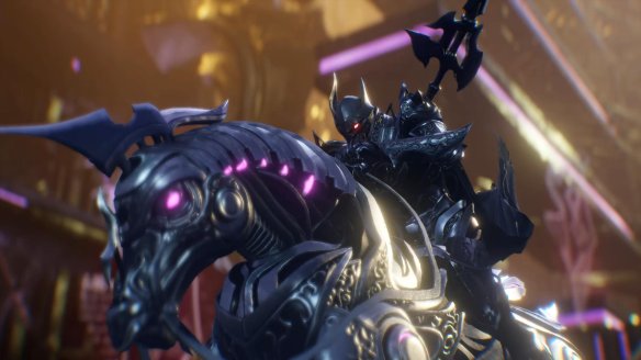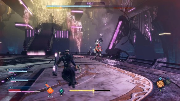第一階段黑騎士為騎乘形態,機動力較強。他的突進攻擊可能會發動1-3次,無法防禦,注意拉開距離後進行閃避。