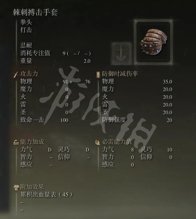 所有流派用的都是晨星拳套自帶45出血,也可以選用棘刺搏擊手套,看起來更像拳皇。