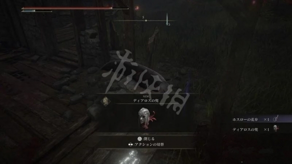 ⑤在賜福點休息,從狄亞羅斯屍體處拾取狄亞羅斯頭盔、霍斯勞花瓣鞭、稀人盧恩