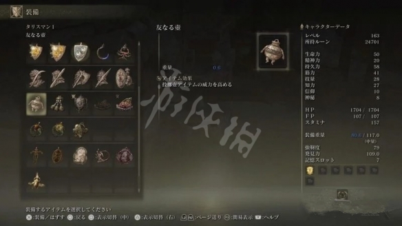 可以增加投擲壺類道具的威力——但看起來不是很實用,因為測試了一下火焰壺的傷害值從375提升到了450,也沒有特別大幅的提高。護符描述如下: