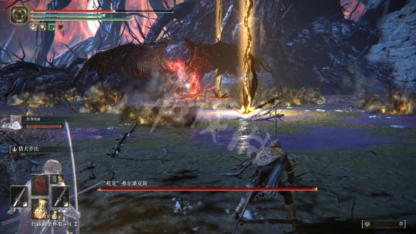 死龍弗爾桑克斯是一個比較炫酷但很好打的Boss,會使用吐息、甩尾等龍的基礎技能。